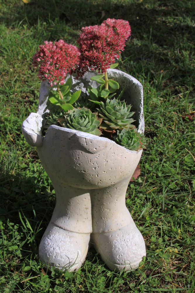 Statue retrouvée cassée à la déchetterie, mon grand-père la récupère et la remplit de fleurs pour faire un joli pot de fleur. Mon idée de la photo : REFAIRE avec pour le concours photo !
