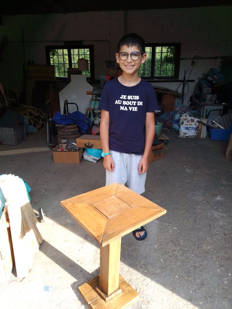 Léo a conçu et réalisé seul une desserte avec d'anciennes planches de coffrage de son arrière grand-père. Le style est plutôt années 30.